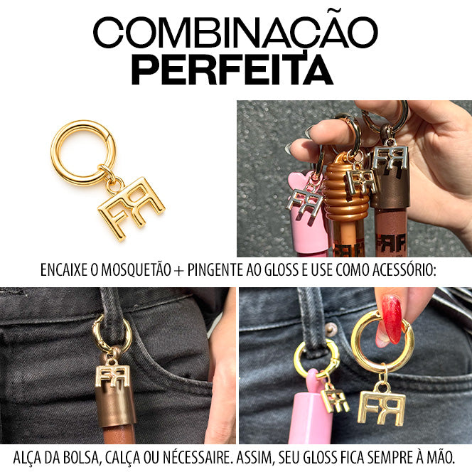 E tem mais: cada mosquetão acompanha um pingente exclusivo FR, um detalhe que faz toda a diferença e transforma seu gloss em um verdadeiro ícone de moda: único, estiloso e só seu!